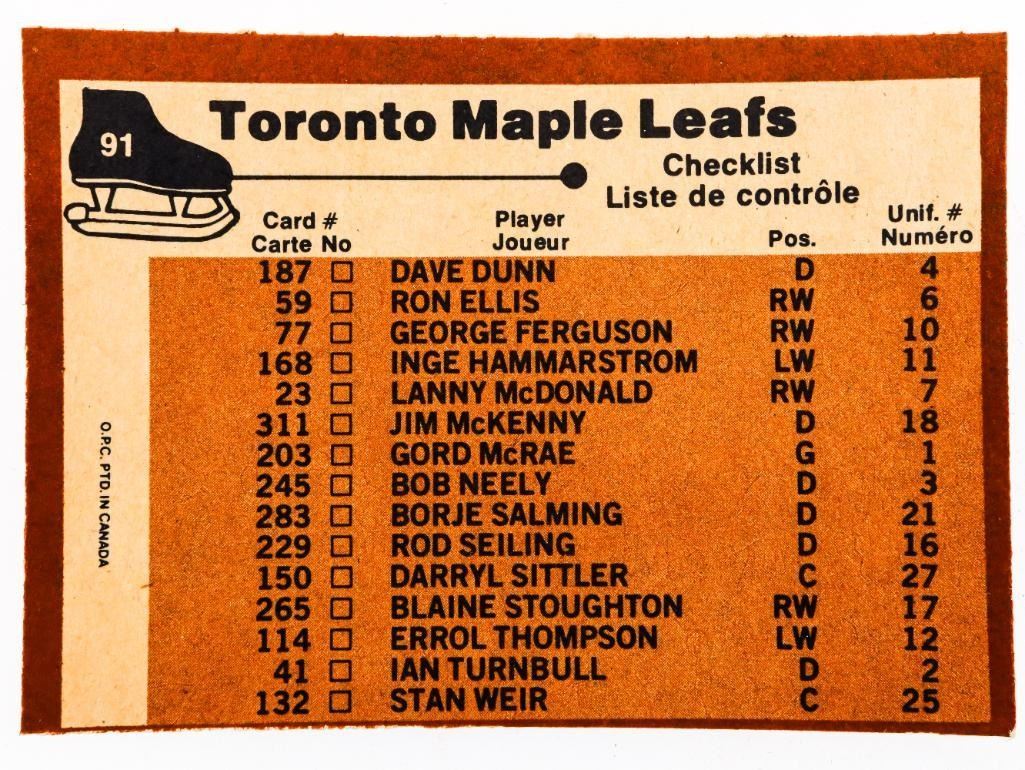 1974-75 TORONTO MAPLE LEAFS Team Photo & Checklist #390 OPC KEY NHL Hockey Card