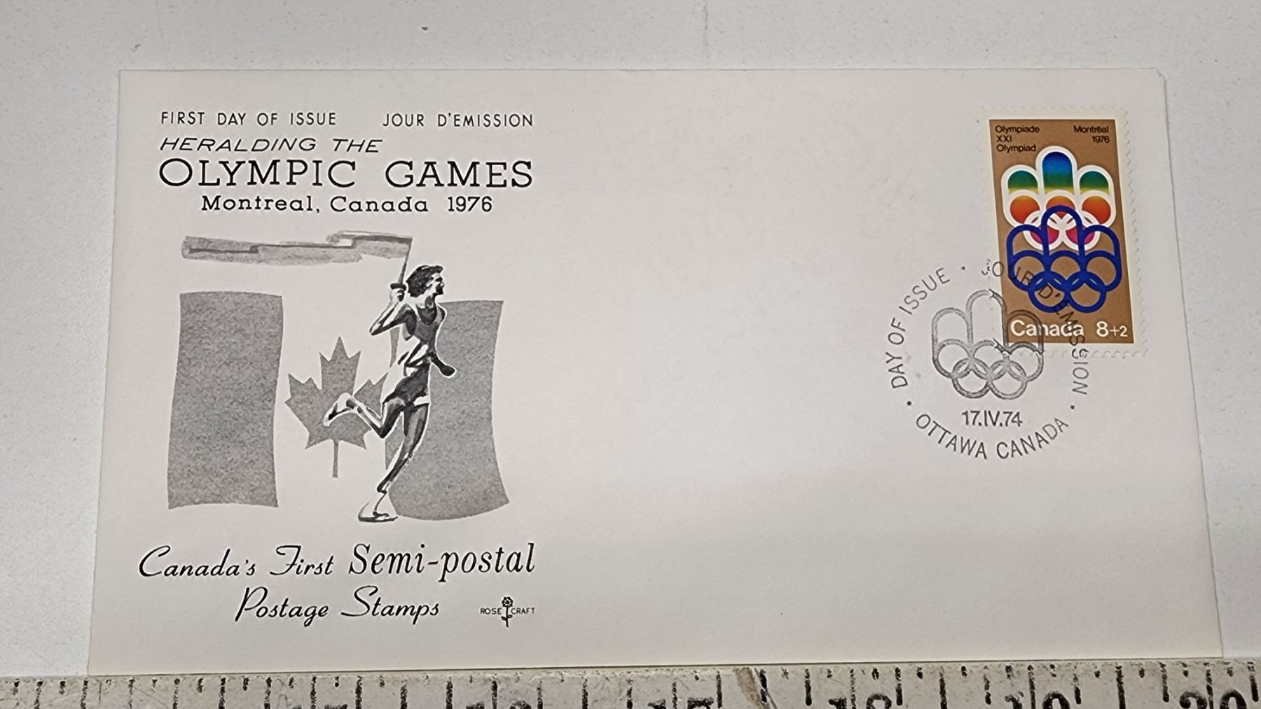 1974 8+2 Cents First Day Cover. Heralding the Olympic Games in Montreal.