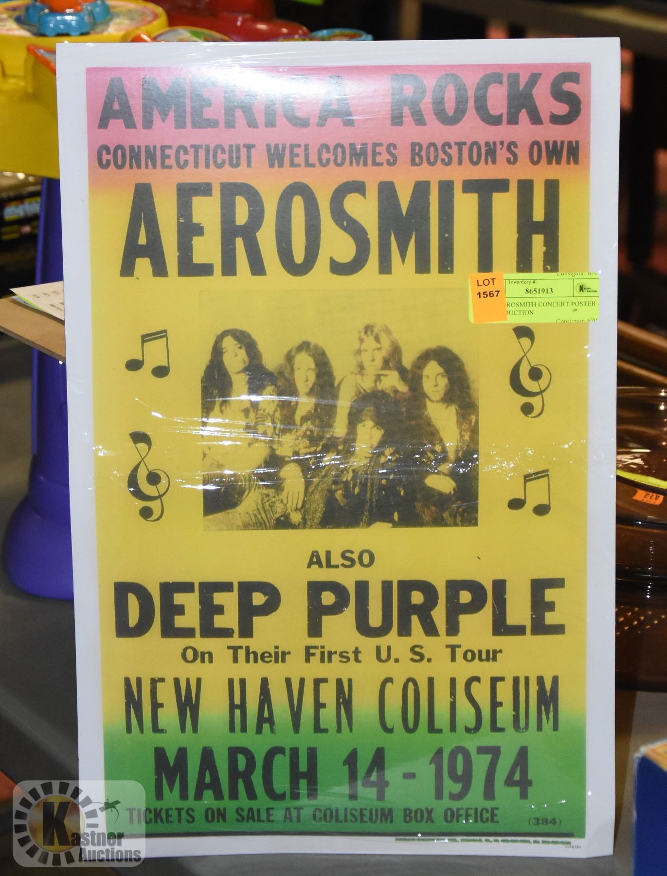 1974 AEROSMITH W/ DEEP PURPLE CONCERT POSTER - REPRODUCTION