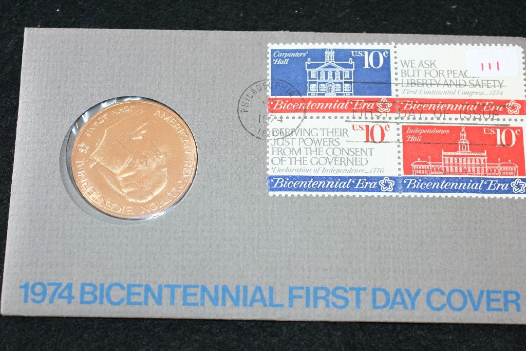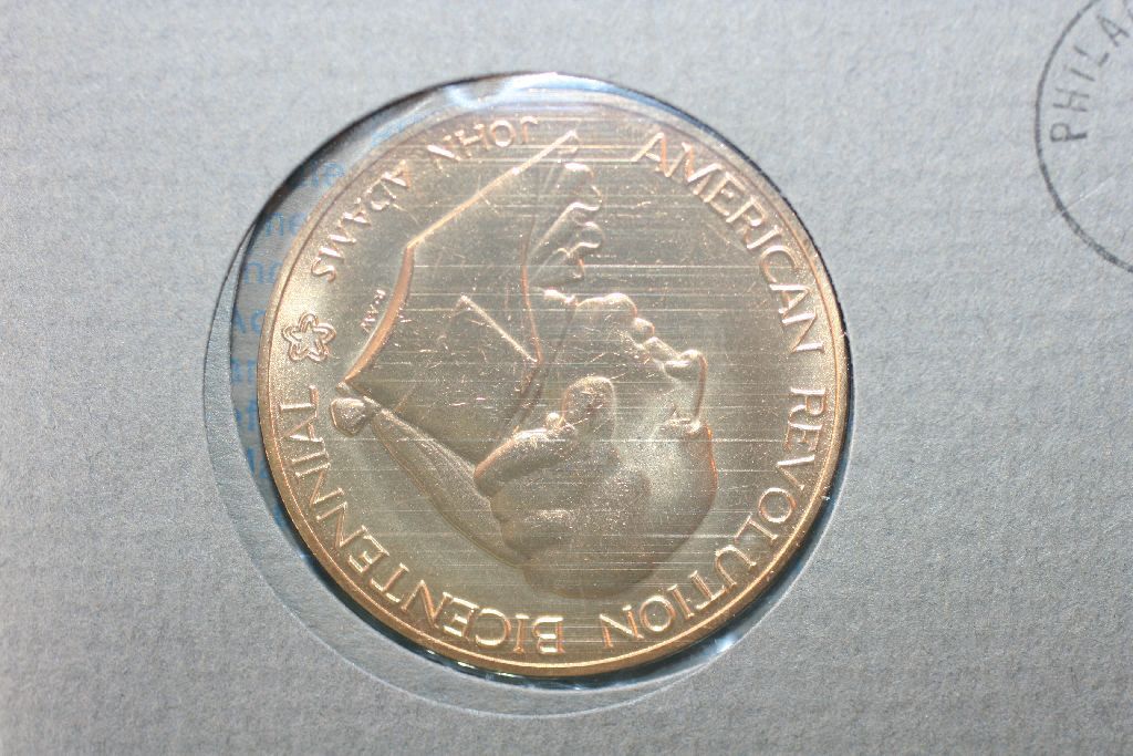 1974 American Revolution Bicentennial First Day Cover John Adams Commerative Medal W/Postal Stamps