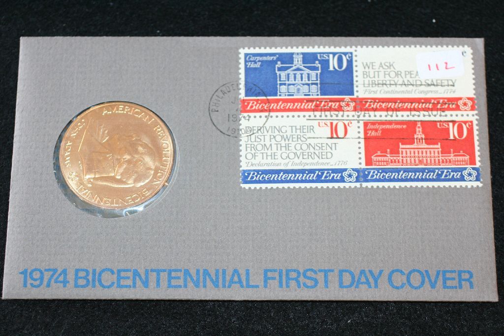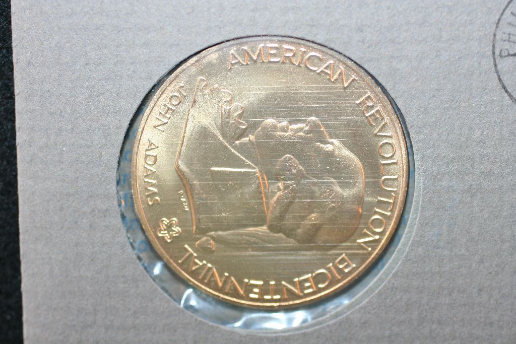 1974 American Revolution Bicentennial First Day Cover John Adams Commerative Medal W/Postal Stamps