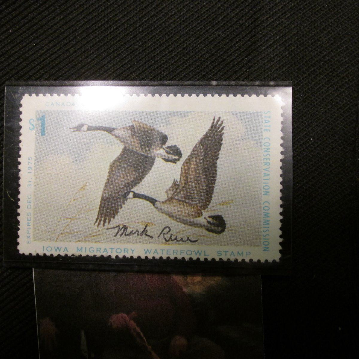 1974 Artist Signed Iowa Migratory Waterfowl One Dollar Stamp, signed by Mark Reece. NH.