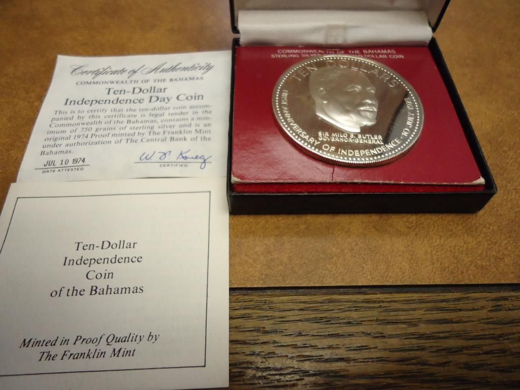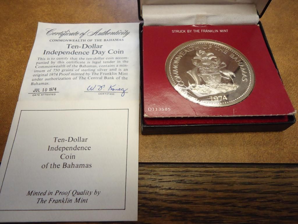 1974 BAHAMAS $10 STERLING SILVER PROOF 1.5 OUNCE