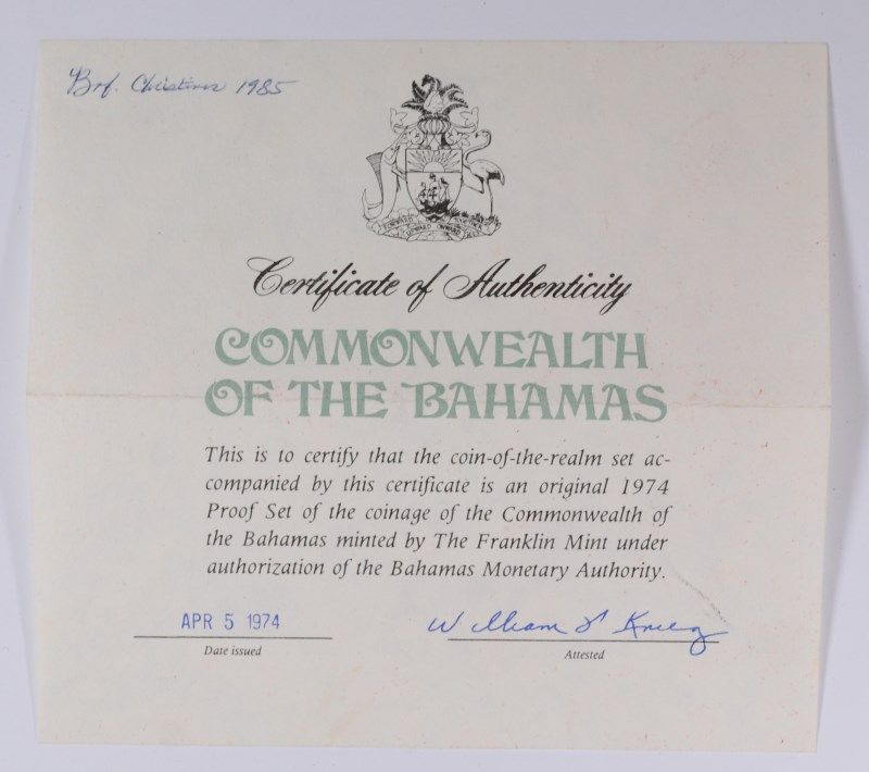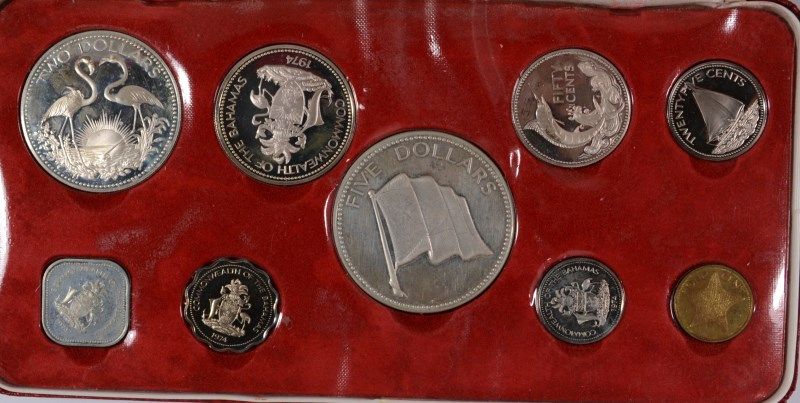 1974 BAHAMAS PROOF SET WITH ( 4 ) SILVER COINS, SCARCE SET!