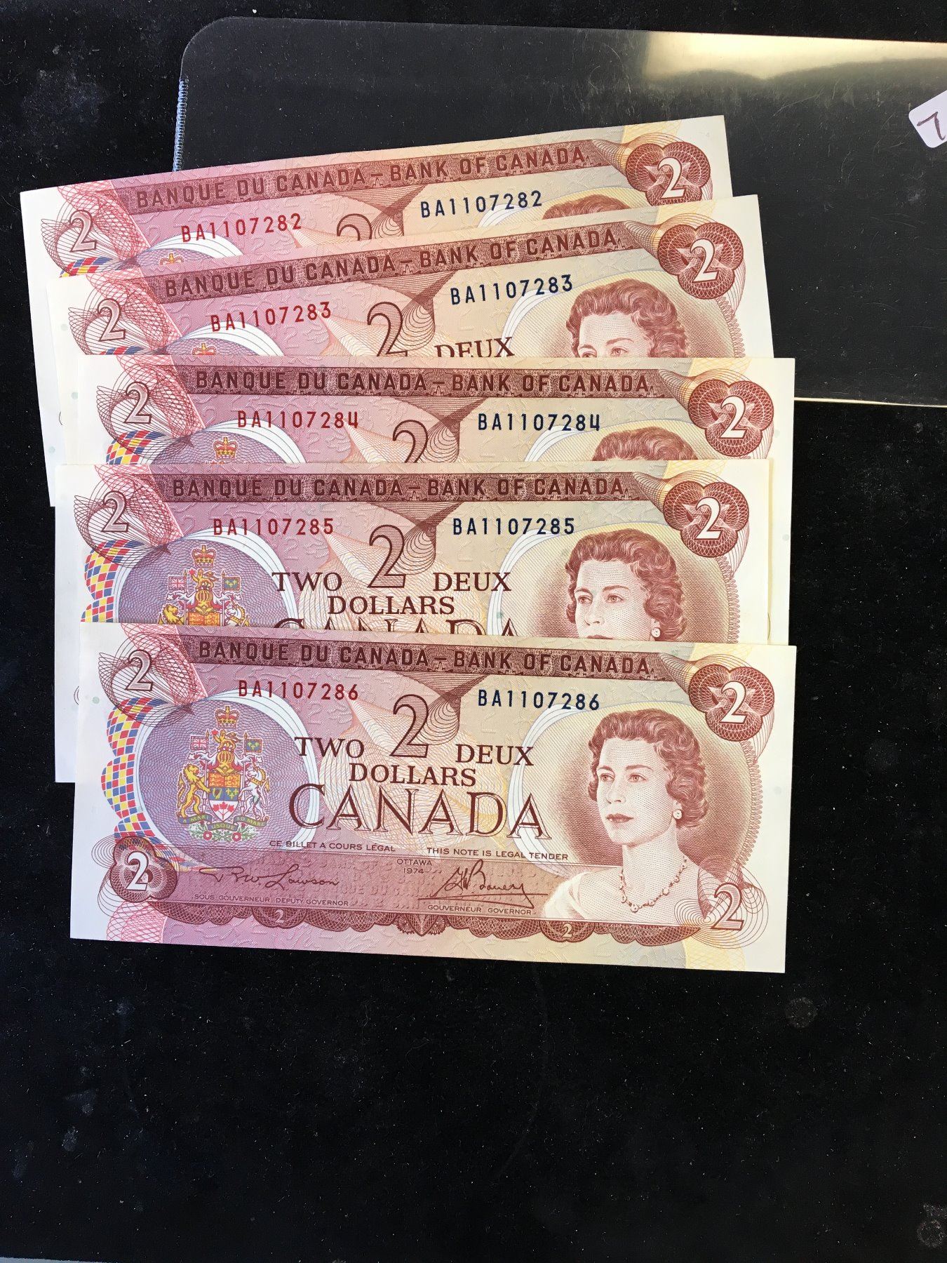 NICE LOT OF 5 SEQUENTIAL NOTES.GRADES CHOICE UNC