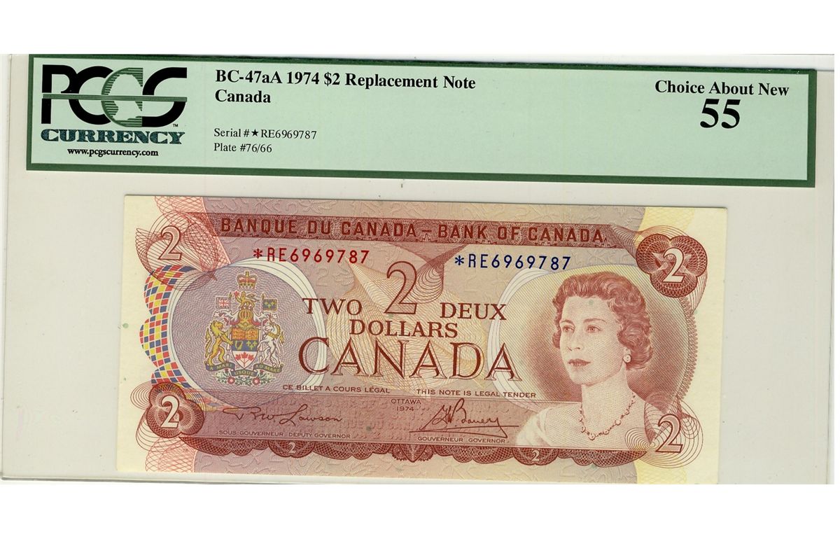 1974 Bank of Canada; $2 BC-47aA #*RE6969787 PCGS CH AU55.