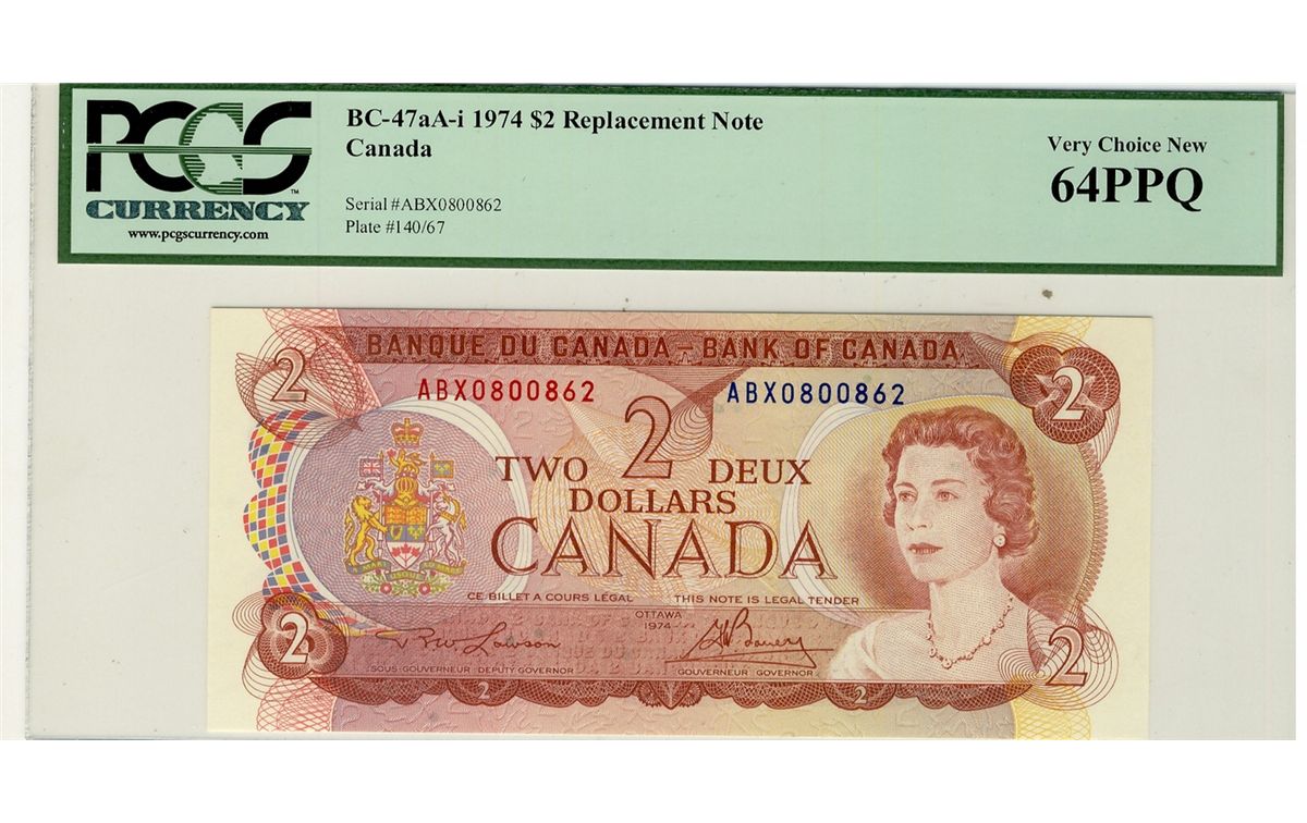 1974 Bank of Canada; $2 BC-47aA-i #ABX0800862 PCGS CH UNC64PPQ.