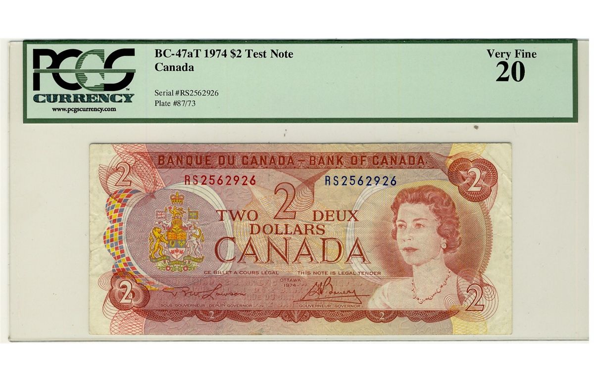 1974 Bank of Canada; $2 BC-47aT #RS2562926 PCGS VF20.