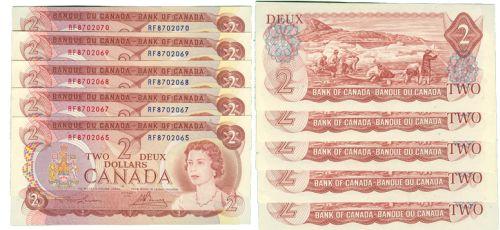 0841 - 1974 Bank of Canada $2's Consecutive-Unc