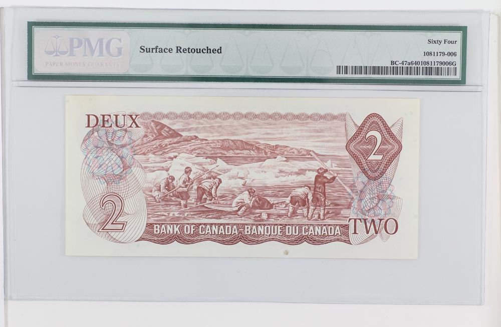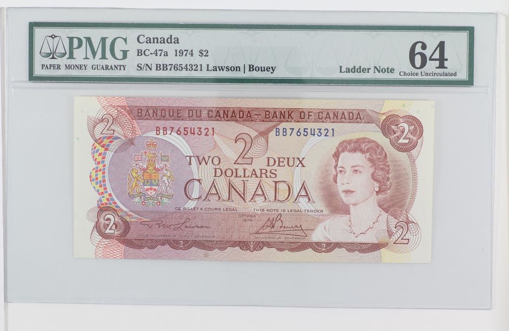 1974 Bank of Canada Descending Ladder $2. BC-47a, S/N: BB7654321, PMG CUNC-64