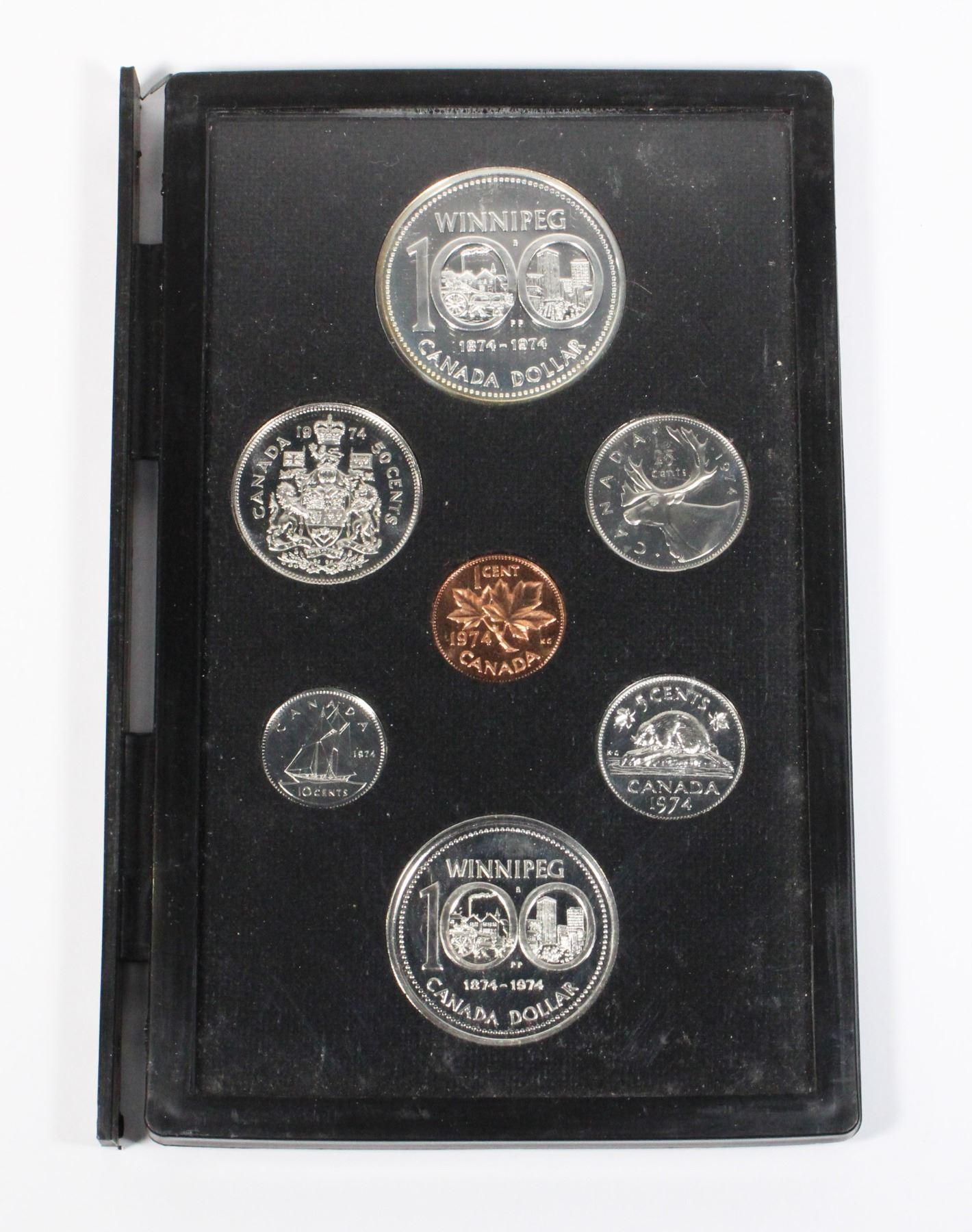 LARGER DOLLAR IS SILVER AND CELEBRATES THE CITY OF WINNIPEG CENTENNIAL. NO PAPERWORK OR OUTER BOOK CASE
