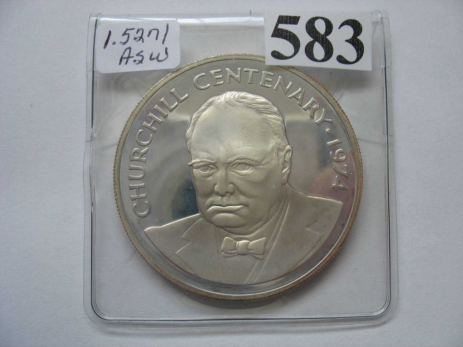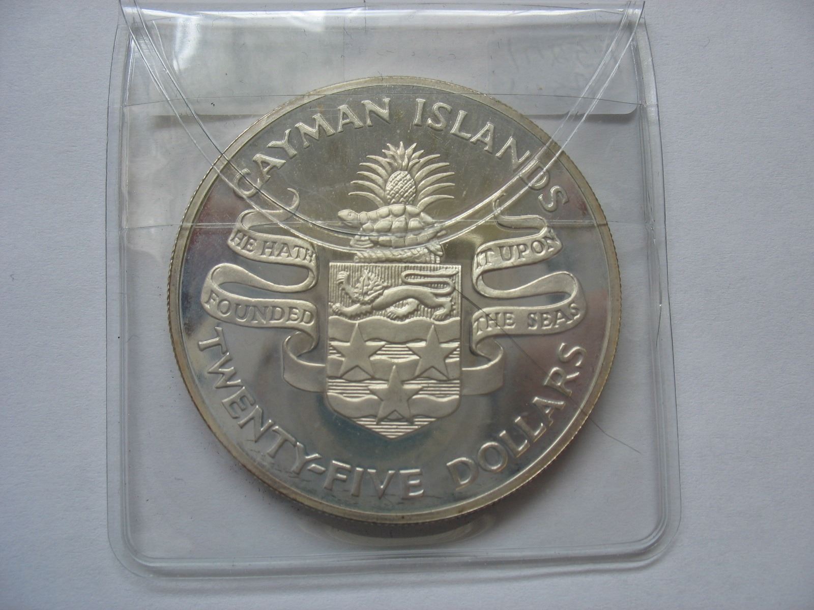1974 CAYMAN ISLANDS SILVER 25 DOLLARS - CHURCHILL - 1.5271 OZ Silver Content