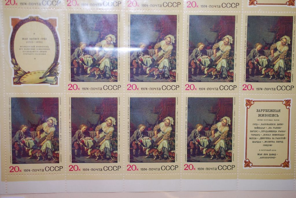 1974 CCCP/USSR Postal Stamp Sheet; Lot of 16 Stamps; EST. $10-20