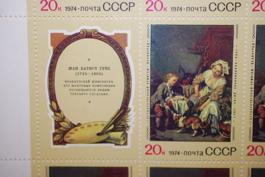 1974 CCCP/USSR Postal Stamp Sheet; Lot of 16 Stamps; EST. $10-20