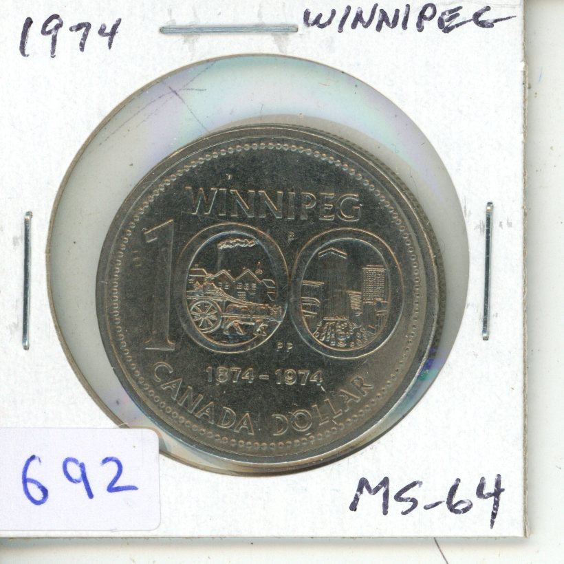 1974 Canadian Nickel Dollar. Commemorates the 100th Anniversary of Winnipeg. MS-64.