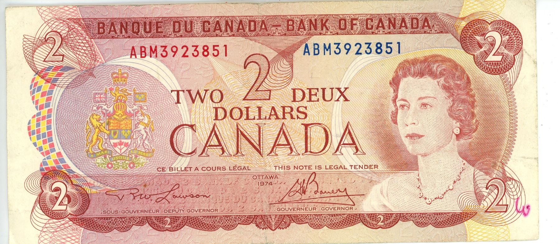 1974 Canadian Two Dollar Bill