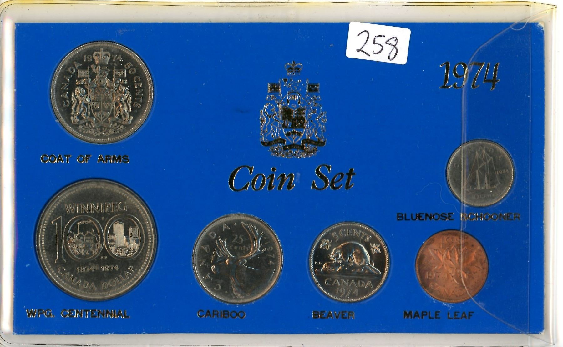 1974 Canadian Year Set. 6-coin set includes Nickel Dollar that commemorates the Centennial of Winnipeg.