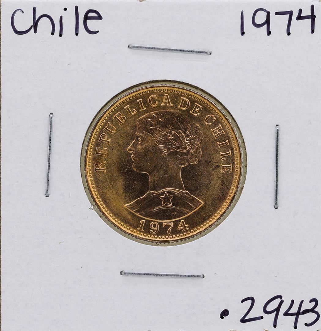 One 1974 Chile 50 Pesos Condores Reublica De Chile Gold Coin.