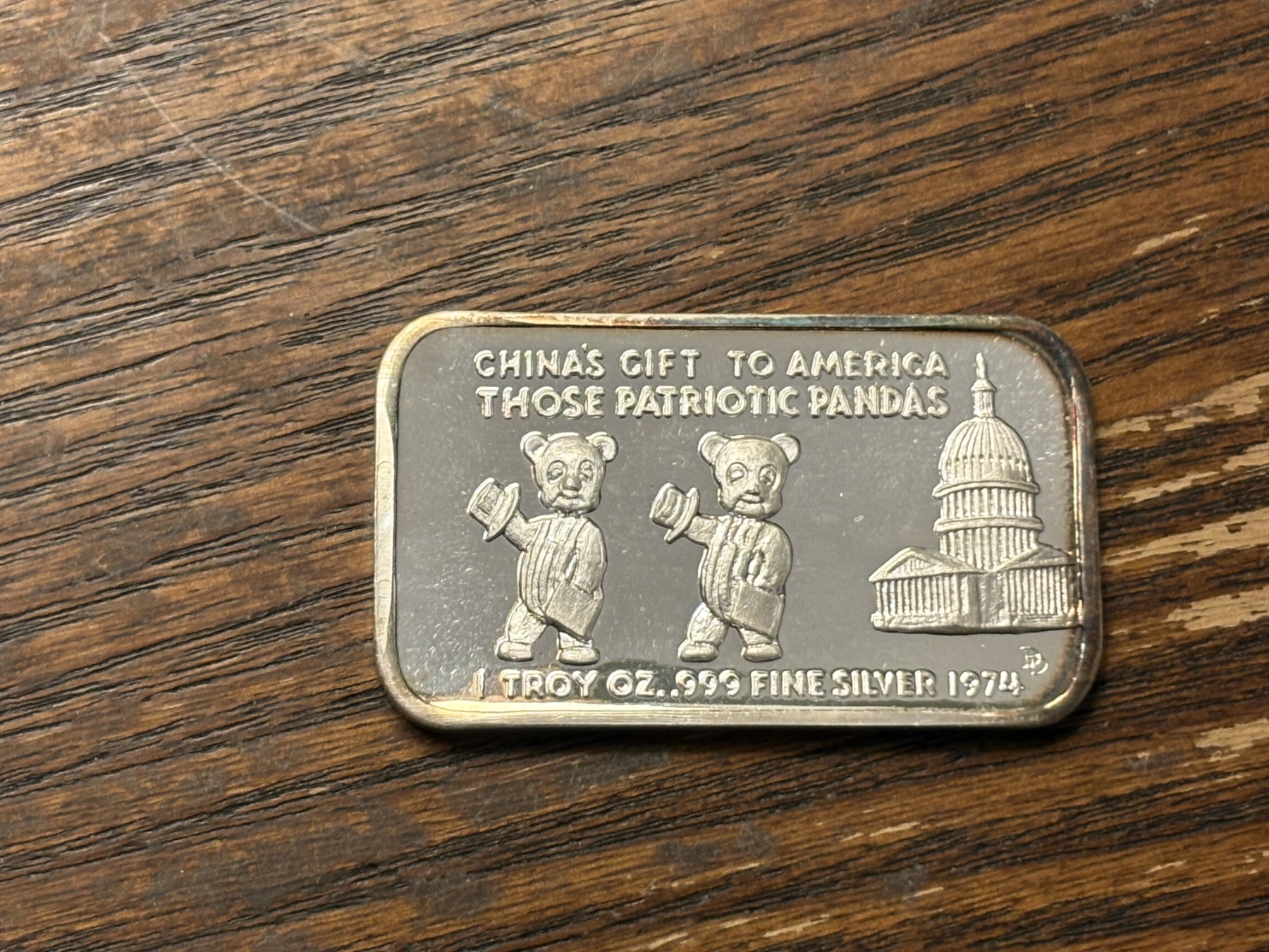 1974 China's Gift to America Those Patriotic Pandas - 1Troy Ounce .999 Fine Silver Bar - The International Silver Ingot Co. Pheonix, Ariz. - Encapsulated