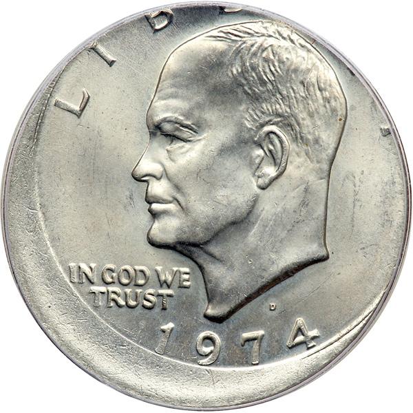 1974-D Eisenhower Dollar. PCGS graded MS-65 Mint Error. 12% Off Center. Interesting Mint Error and a Gem! (PCGS # 7416) .