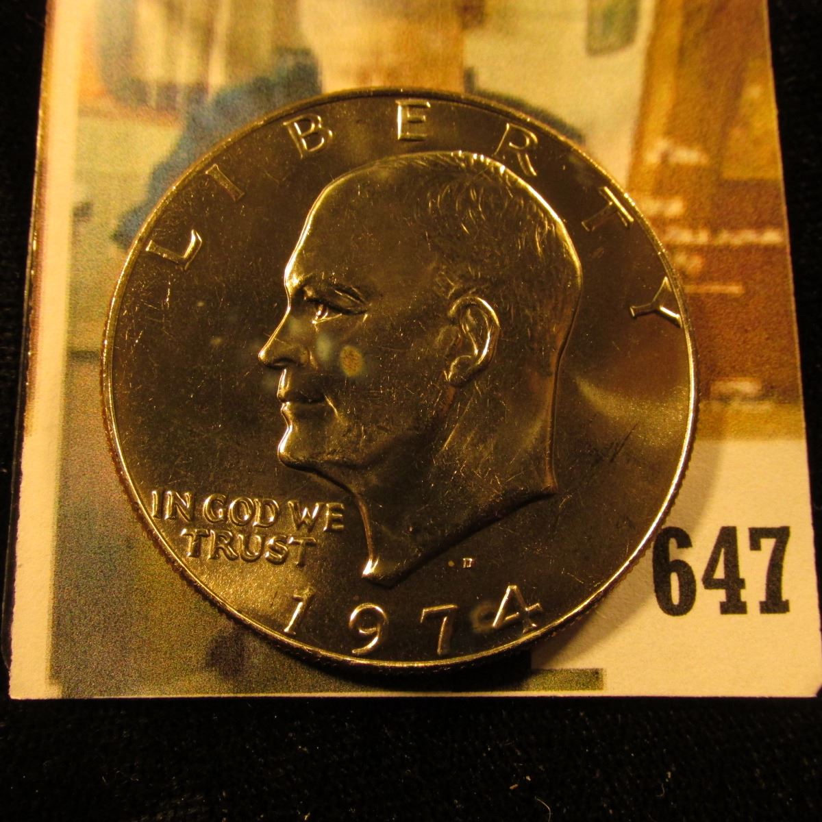 1974-D Eisenhower Dollar, BU from Mint Set, value $6 to $38