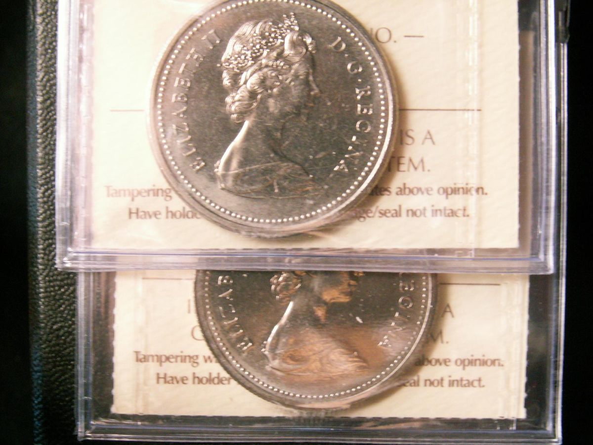 1974 Dbl Yoke #2 & 1977 rotated Dies $ MS64. Lot of 2 Nickel coins both ICCS graded.