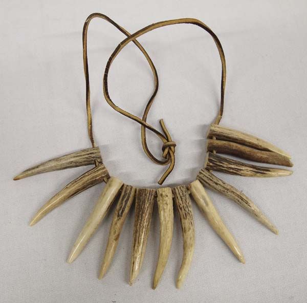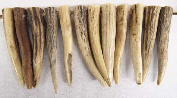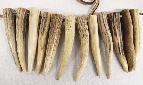 1974 Deer Antler Tips on Leather Strap, each measuring 3''L