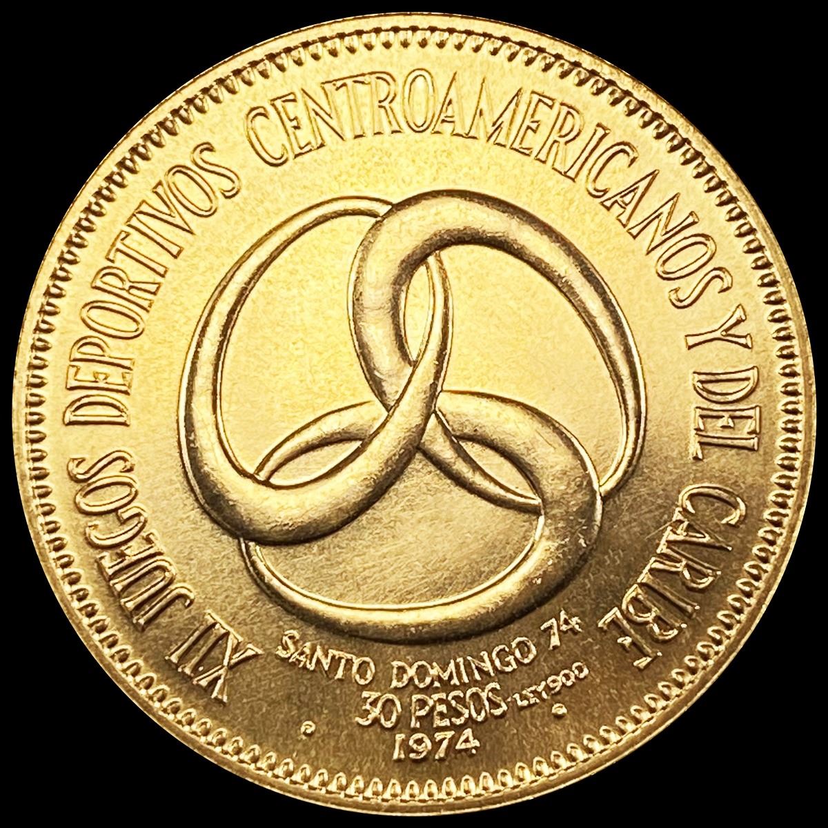 1974 Dom. Repub. Gold 30 Pesos .3oz CHOICE BU
