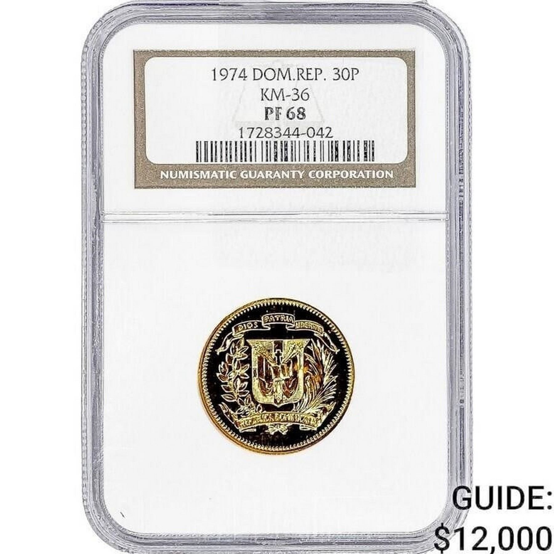 1974 Dom. Republic .3395oz Gold 30 Pesos NGC PF68