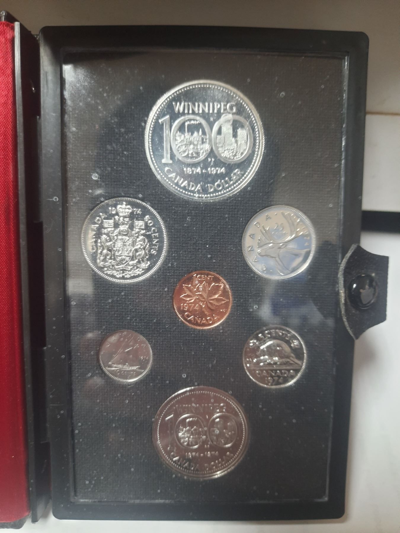 1974 Double Dollar Specimen Set. 7-coin set includes a Silver Dollar that commemorates the 100th Anniversary of Winnipeg.