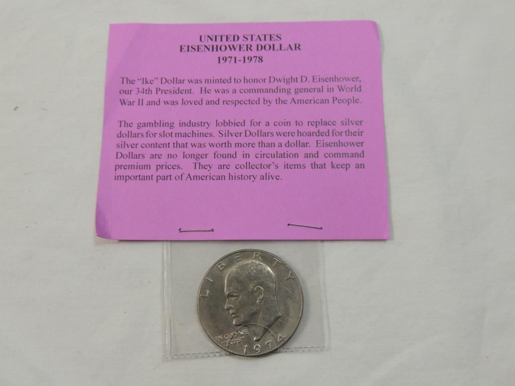 1974 UNITED STATES EISENHOWER DOLLARUS CURRENCY COIN COLLECTIBLE. AS SHOWN SEE PHOTO FOR MORE DETAILS.