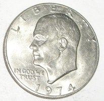1974 EISENHOWER "IKE" DOLLAR COIN!! DOLLAR CAME OUT OF SAFE *NICE AU GRADE*!! ***Coin, Currency & All Items Listed in this auction - Grades, Conditions and Values are not Safe Deposit Coins LLC Responsibilty. Grades, Condition and Values are determined by Consigner(s) & Buyers ONLY