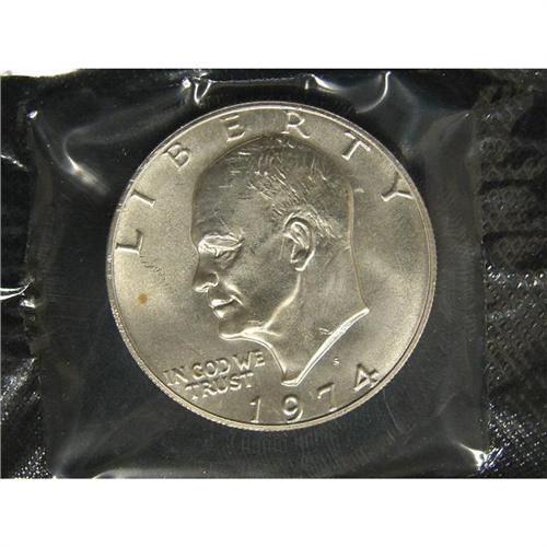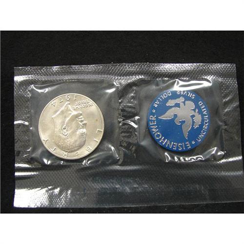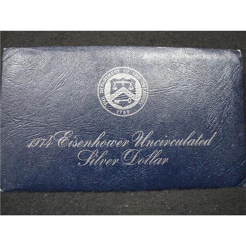 1974 EISENHOWER SILVER DOLLAR. Unc. With U.S. Mint envelope.