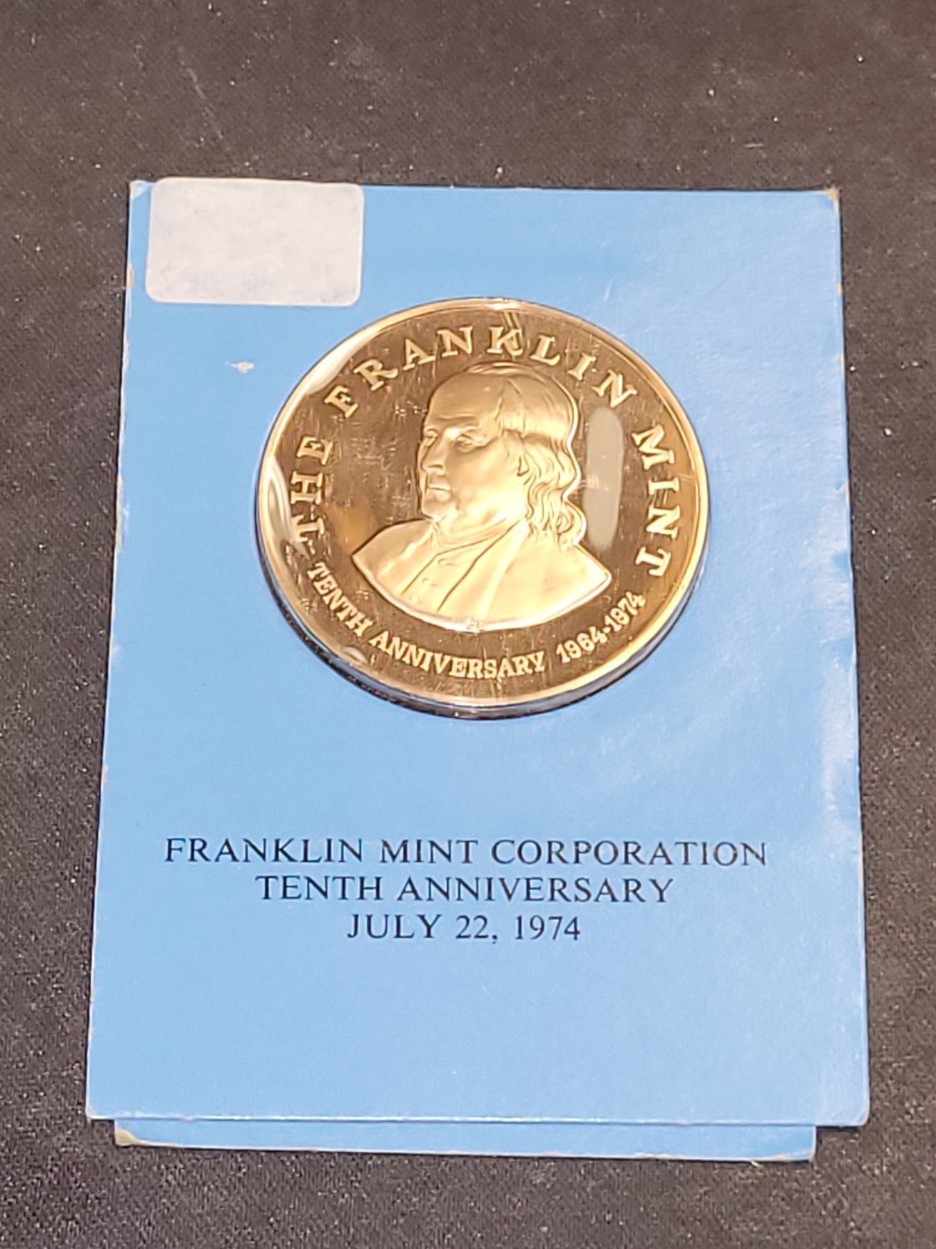 1974 Franklin Mint Tenth Anniversary Solid Bronze Medallion IImited Edition