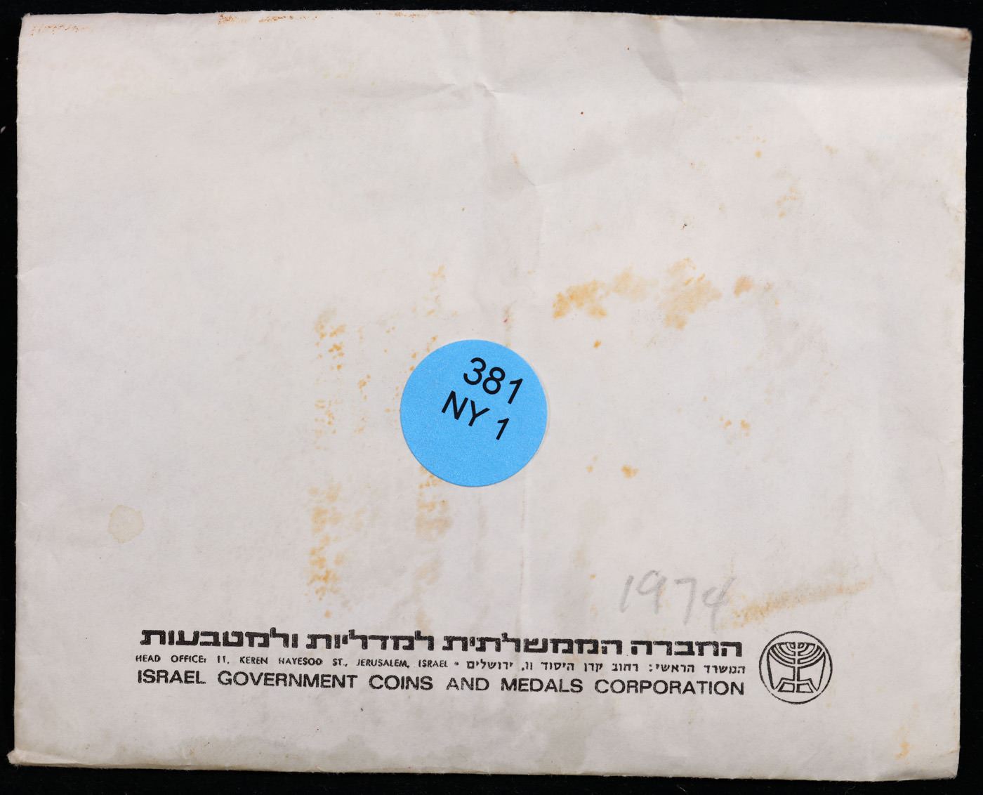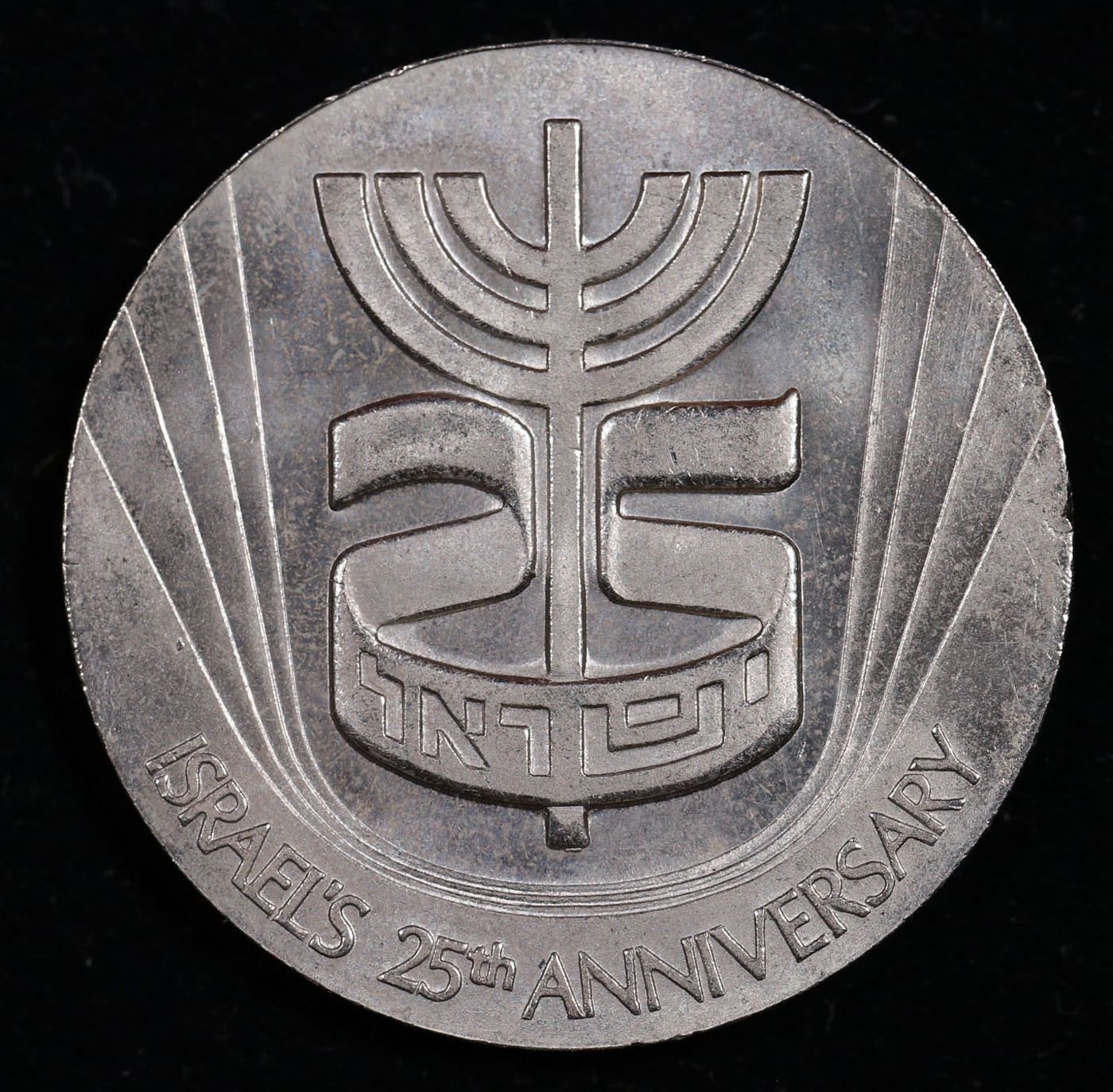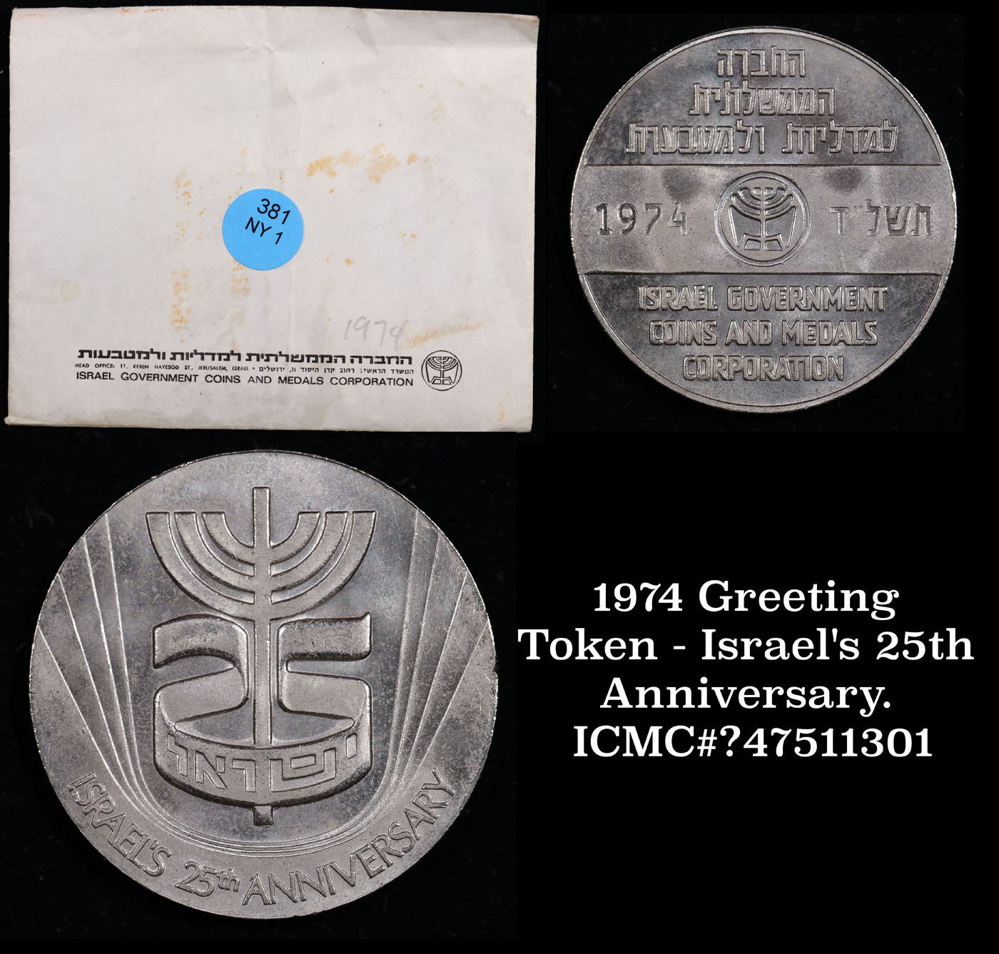 1974 Greeting Token - Israel's 25th Anniversary. ICMC#?47511301. A greeting token from the Isael Government Coins and Medals Corporation, come in original envelope with original greeting card.