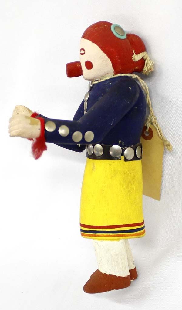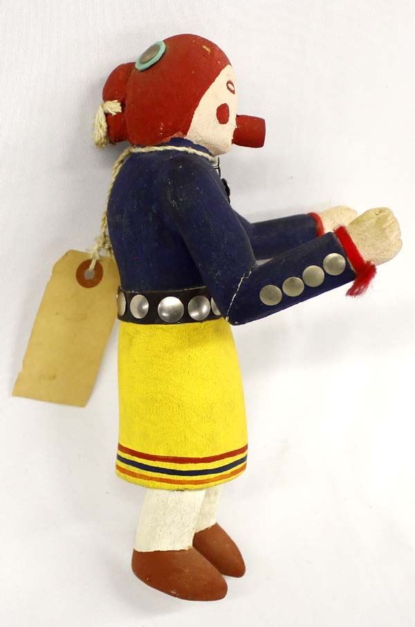 1974 Native American Hopi ''Navajo Maiden'' Kachina by Eileen Adams of 2nd Mesa, measures 6'' x 10'' x 4'' and comes with original tag, embellished with silvertone tacks