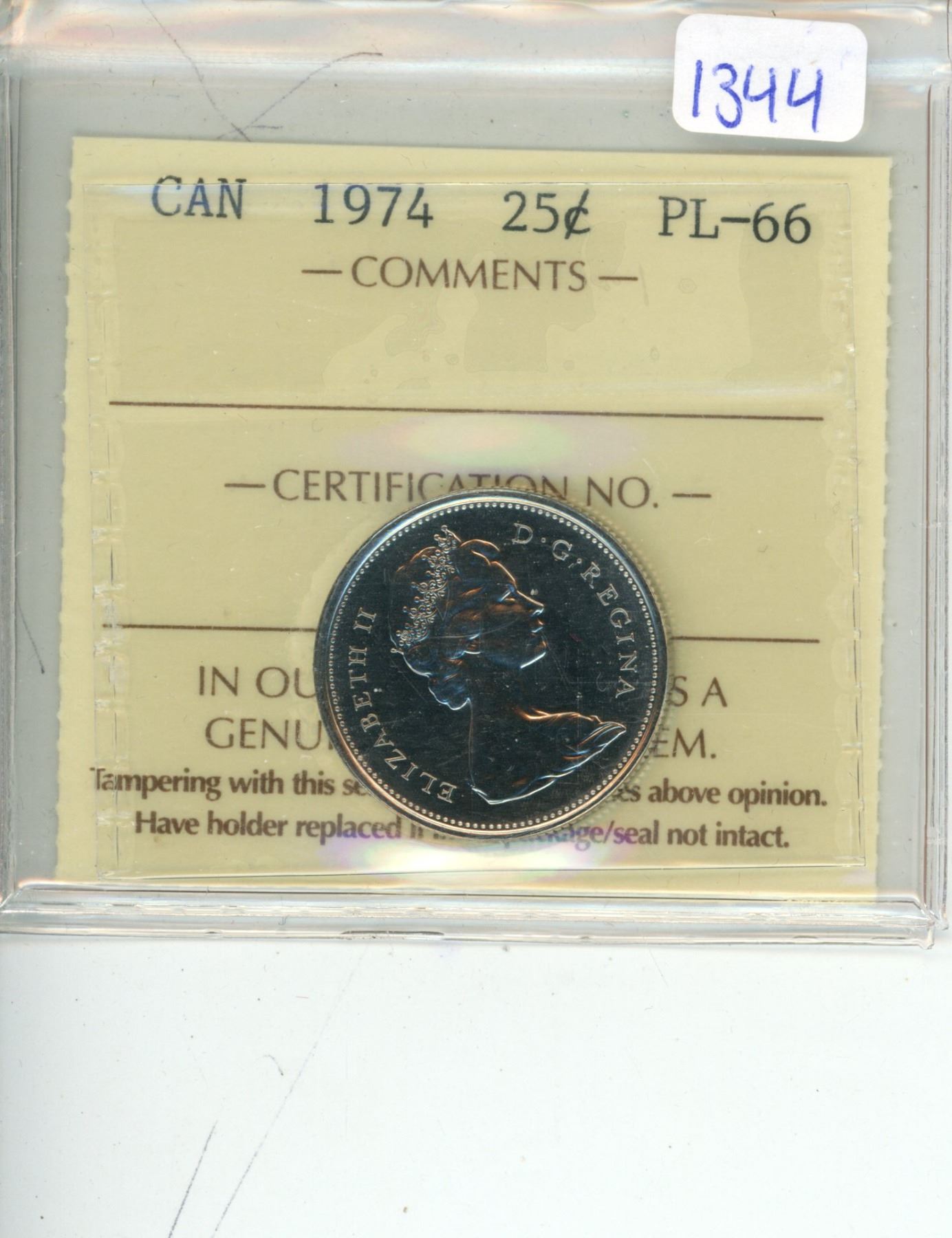 1974 ICCS graded, Canadian 25 cent coin - PL66