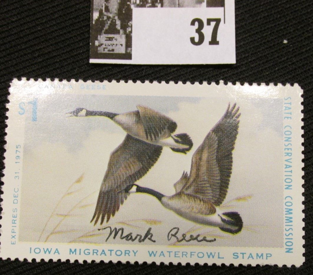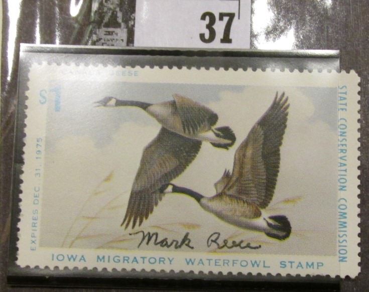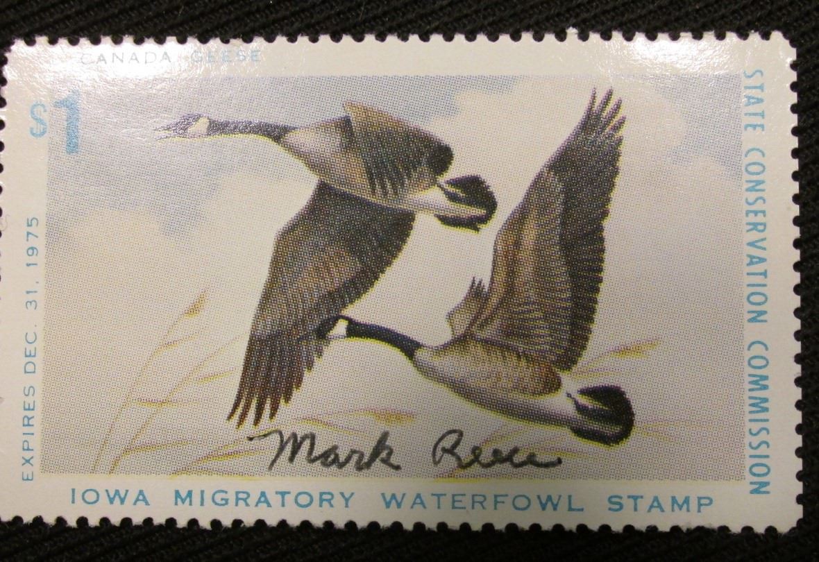 1974 Iowa State Conservation Commission Migratory Waterfowl Stamp, NH, VF, Signed by the Artist "Mark Reece". IA3.
