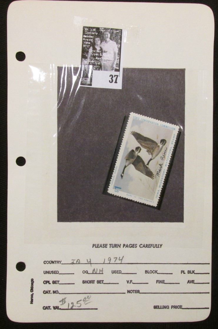1974 Iowa State Conservation Commission Migratory Waterfowl Stamp, NH, VF, Signed by the Artist "Mar