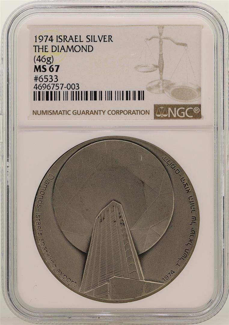 One 1974 Israel Silver The Diamond Medal NGC MS67. NGC Certified.