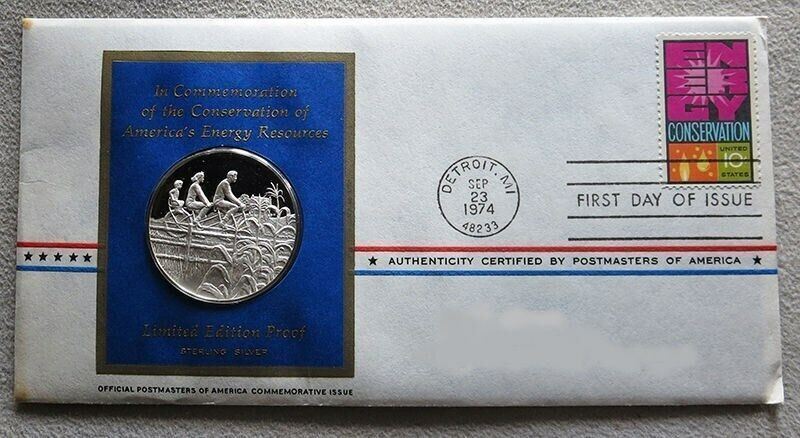1974 LIMITED EDITION SILVER PROOF CONSERVATION OF ENERGY RESOURCES FIRST DAY OF ISSUE STERLING SILVER