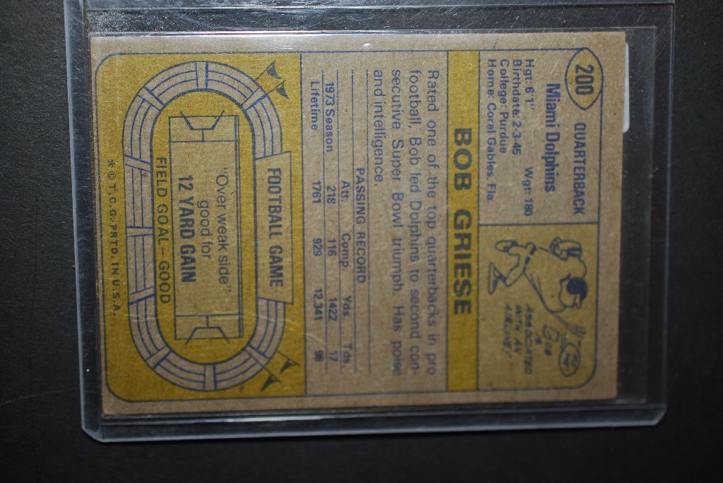 1974 NFL Bob Griese Miami Dolphins Football Trading Card; EST. $5-10