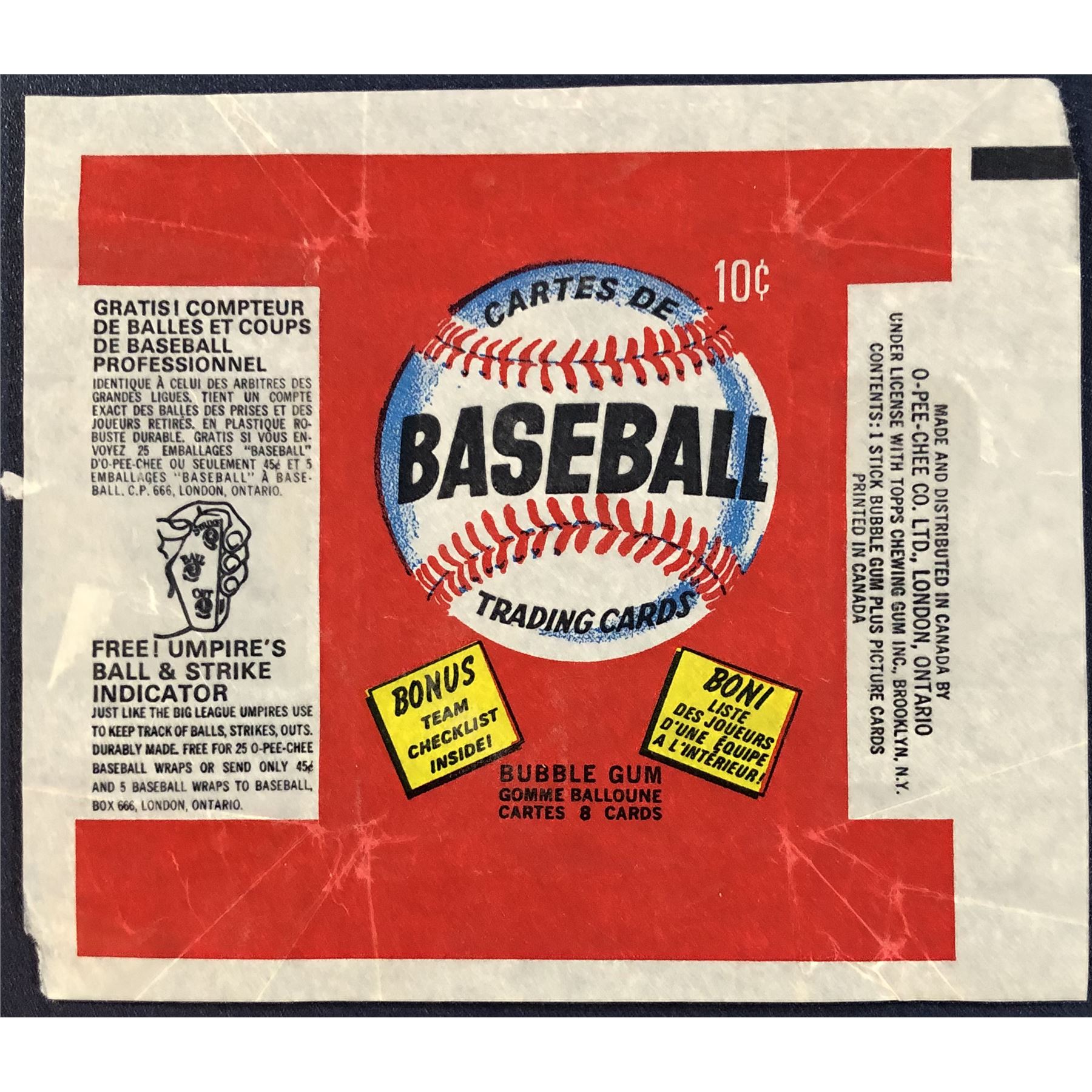 1974 O-PEE-CHEE BASEBALL WRAPPER