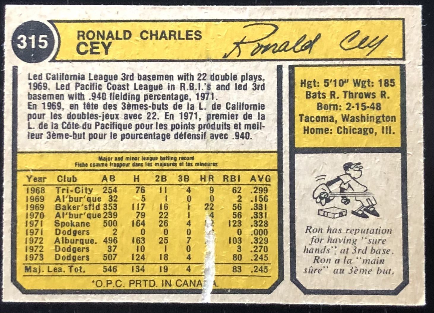 Card #315 MLB, baseball, vintage, OPC