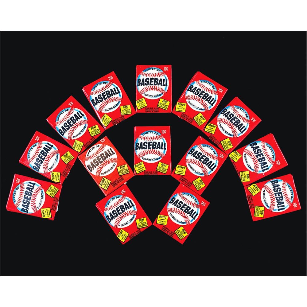 Group of 14 original and unopened baseball card packs from the elusive 1974 O-Pee-Chee issue recently found in a longtime collector’s closet. The issue itself far surpasses its Topps counterpart from the same year and rarely shows up for sale or auction. Each pack has been meticulously inspected by Steve Hart (BBCE), the foremost authority on unopened material.