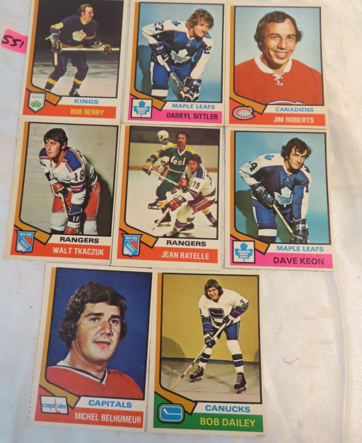 #18 Bob Berry, #40 Darryl Sittler, #78 Jim Roberts, #119 Walter Tkaczuk, #145 Jean Ratelle, #151 Dave Keon, #153 Michael Belhumeur, #240 Bob Dailey, all cards are in excellent condition, corners are in great condition