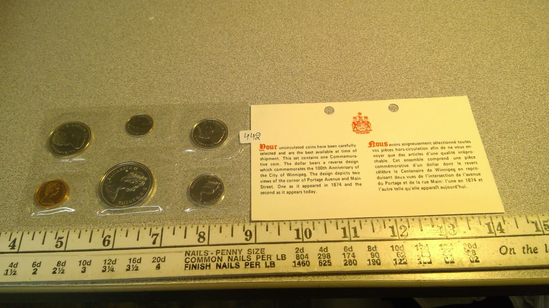 1974 Proof Like Set. 6-coin set includes Winnipeg Centennial Dollar.