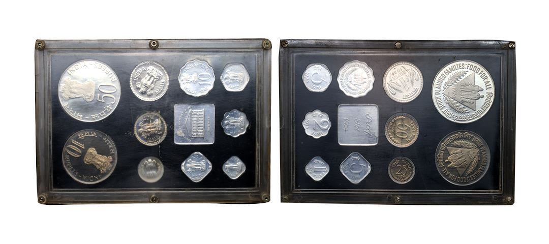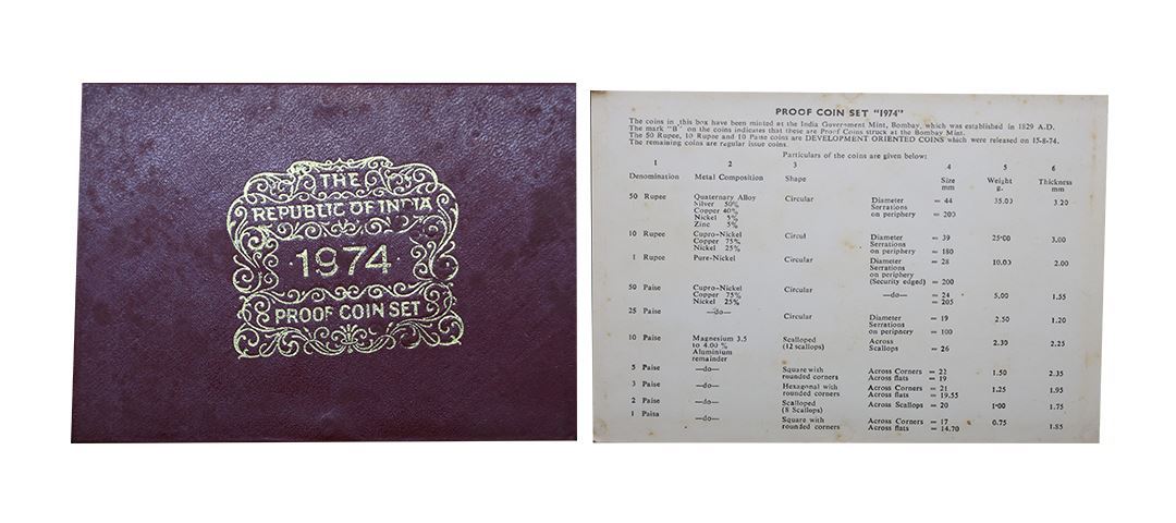 1974 Proof Set, Planned Families Food For All, set of 10, 1 Paisa to Rupees 50. In immaculate condition, within original packaging. (10); ( from the collection of Mr. I. K. Kejriwal ).
