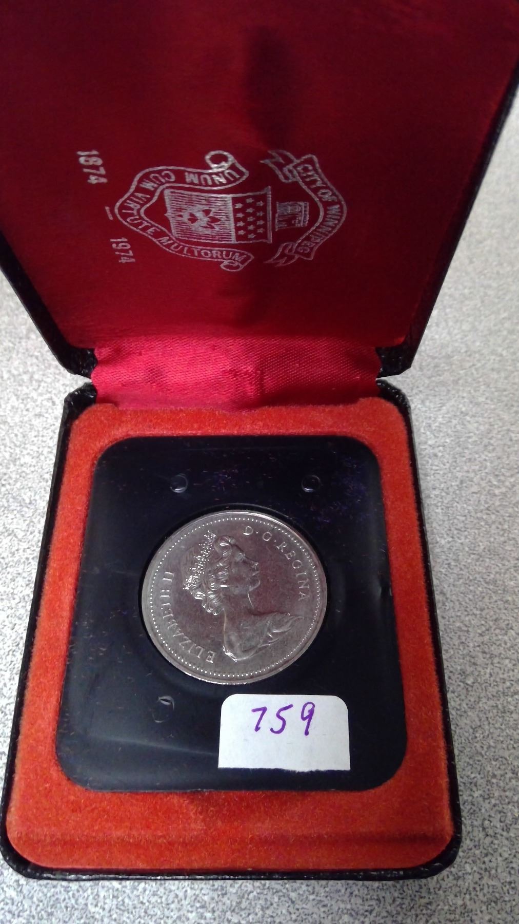1974 RCM dollar Winnipeg coin in original case and cardboard sleeve