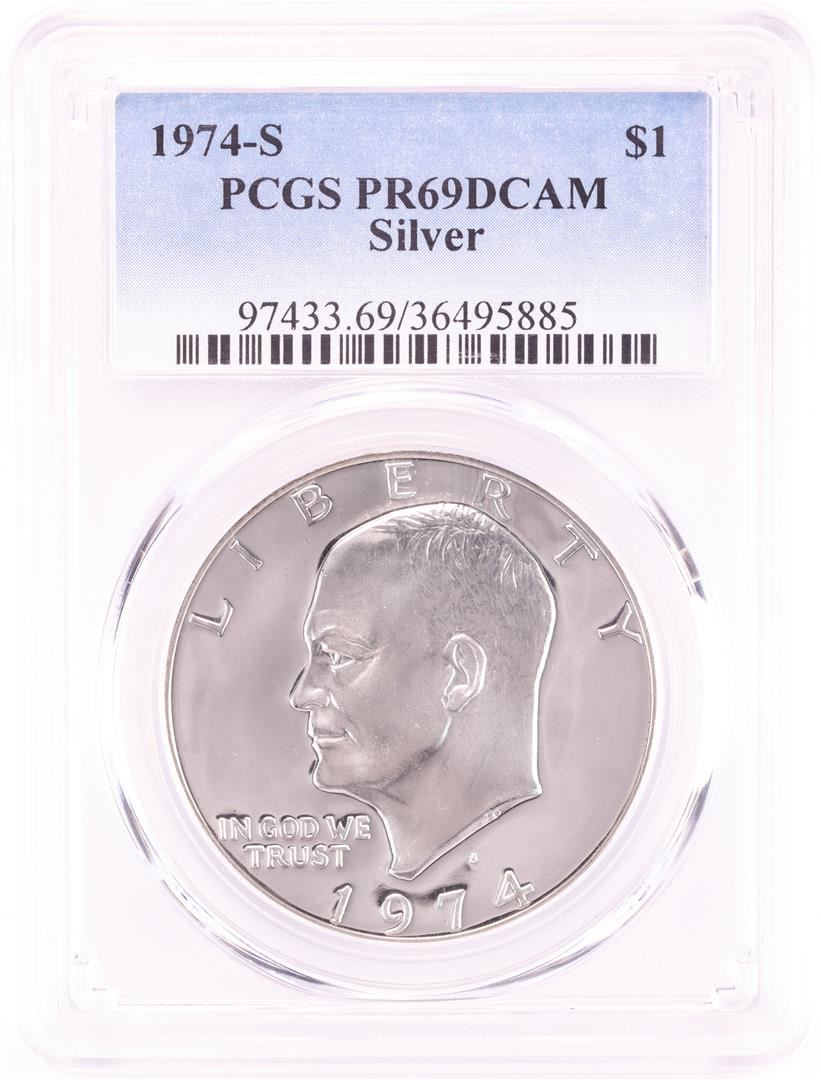 One 1974-S $1 Proof Eisenhower Silver Dollar Coin PCGS PR69DCAM. PCGS Graded.
